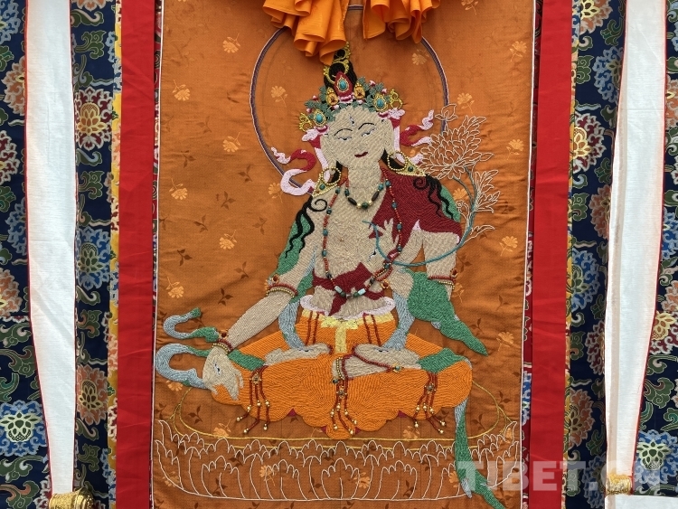 中國西藏網(wǎng)訊 在你印象中,西藏唐卡是怎樣的呢?除了一筆一畫的匠心工筆外,還有一針一線的飛針走線。2023年盛夏8月,記者在西藏日喀則市定結(jié)縣第十七屆夏爾巴旅游文化節(jié)展銷會(huì)上采訪時(shí),遇到了難得一見的“珍珠唐卡”。在白帳篷里,一對(duì)夫妻正埋頭干針線活,他們端坐在木質(zhì)繡架前一針一線串起珍珠、綠松石、珊瑚等珍貴珠寶,在這熱鬧的集市中顯得格外寧靜。