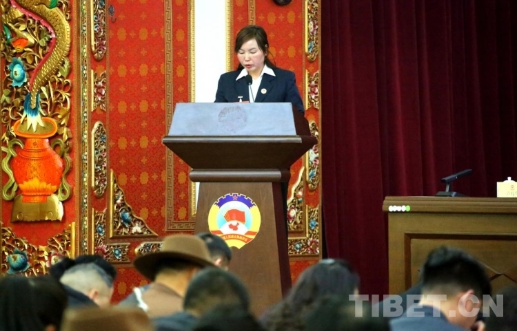 圖為趙彩娥在拉薩政協(xié)十二屆四次會議第二次全體會議上發(fā)言 攝影:王佳豪