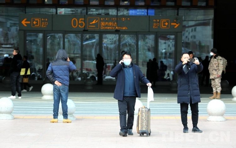 圖為1月26日春運(yùn)首日,剛剛抵達(dá)拉薩貢嘎機(jī)場的旅客 攝影:王佳豪