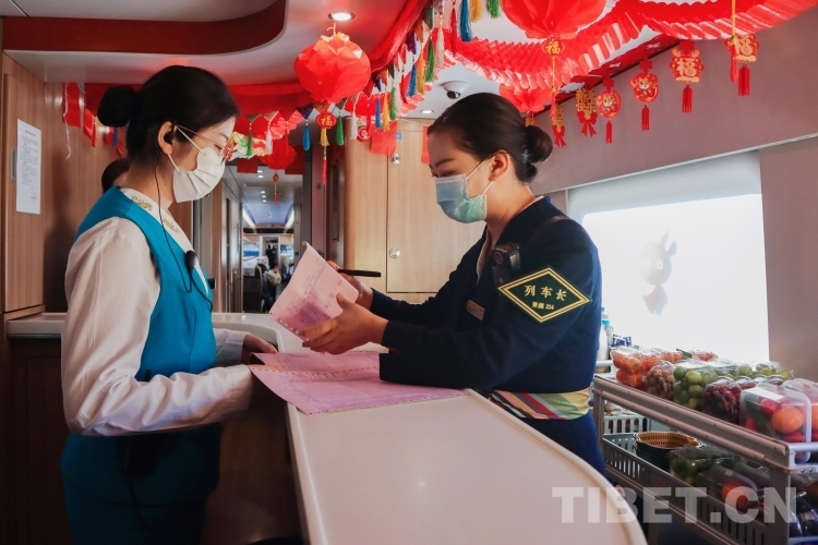 “由于春運期間旅客人數(shù)的增多,為滿足高原群眾出行需要,拉日鐵路加開了多趟臨客列車,我今天所值乘的C921次就是其中之一,列車到達(dá)日喀則后會立即變更為C922次返回拉薩。”列車長周晶今天將值乘4趟列車,在拉薩和日喀則間往返2個來回,行程共計1000余公里,從早上8點上車準(zhǔn)備到20:50返回拉薩休息,周晶一天的工作有將近12個小時都是在列車上度過的,一日三餐都在列車上解決,一天下來光在列車上就要走將近2萬步。