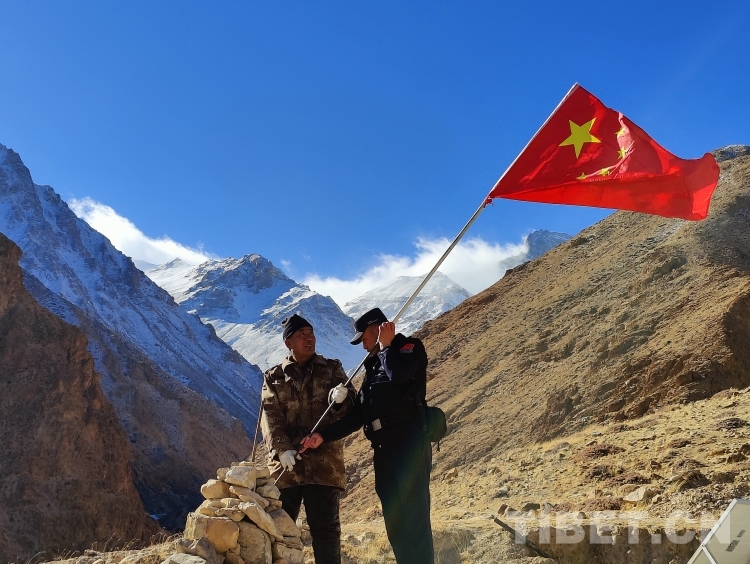 清晨,一陣清脆的敲擊聲響起,在中尼5號(hào)界樁執(zhí)勤點(diǎn),西藏阿里邊境管理支隊(duì)普蘭邊境派出所民警邊巴次仁正在敲打旗桿。