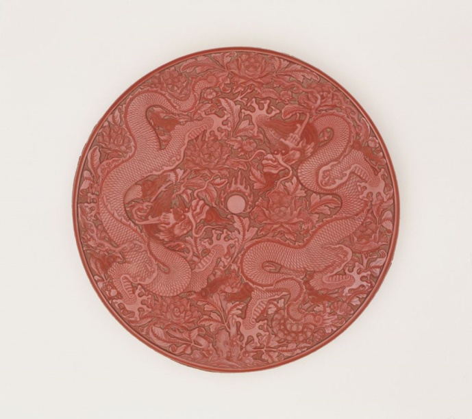 圖為剔紅雙龍牡丹紋圓盒 圖片來源:故宮博物院