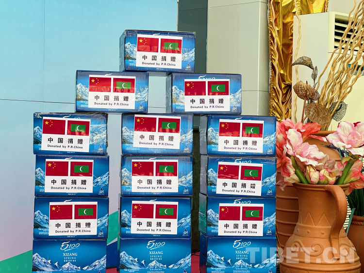 圖為西藏自治區(qū)向馬爾代夫捐贈(zèng)的“西藏好水” 攝影:德吉卓瑪