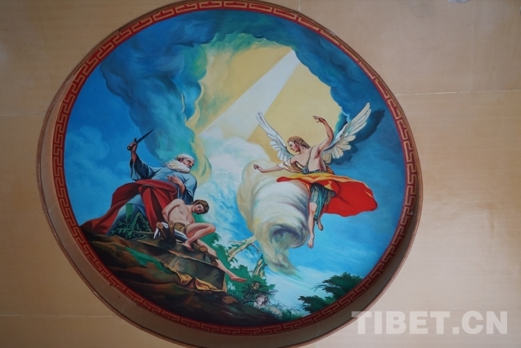 圖為鹽井天主教堂棚頂油畫