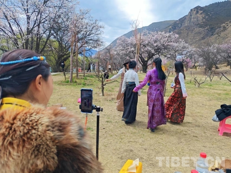在嘎拉村桃花源內(nèi)、民族文化體驗(yàn)區(qū)、產(chǎn)品展銷點(diǎn)……都能看到林芝市職業(yè)技術(shù)學(xué)校學(xué)生們的身影。學(xué)生們走進(jìn)桃花林,以藍(lán)天白云、皚皚雪山為背景,通過(guò)直播帶全國(guó)各地的網(wǎng)友們?cè)朴瘟种ァ疤一ǖ谝淮濉?,展示著桃花灼灼盛開(kāi)的美景。他們生動(dòng)的解說(shuō)和精彩的直播吸引了大量觀眾“云游林芝 云賞桃花”,體驗(yàn)不一樣的桃源春色。
