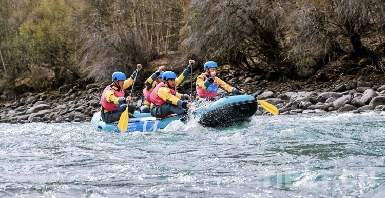 下午,本次巴松措漂流國際公開賽最后一個(gè)四人漂流艇繞標(biāo)賽,雖賽道僅短短3公里,卻險(xiǎn)灘急流不斷,四個(gè)繞標(biāo)浮標(biāo)位置充滿技術(shù)難度。在激烈地角逐之后由成都伽斯特健身俱樂部、重慶彭水縣和曲麻萊云上文旅三支隊(duì)伍獲得四人漂流艇繞標(biāo)賽前三名。