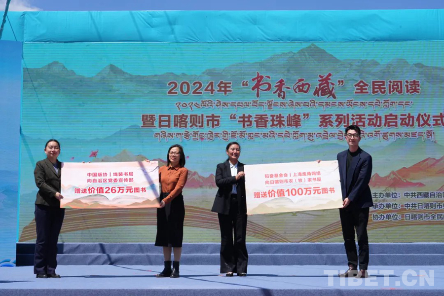 啟動儀式現(xiàn)場,公布了榮獲首屆西藏“書香單位”“最美農(nóng)(牧)家書屋”“最美閱讀推廣人”榮譽稱號的獲獎名單,并向相關(guān)代表進行頒獎授牌。中國出版協(xié)會、韜奮基金會、線裝書局有限公司及上海鷹角網(wǎng)絡(luò)科技有限公司向西藏自治區(qū)黨委宣傳部和日喀則市委宣傳部贈書。