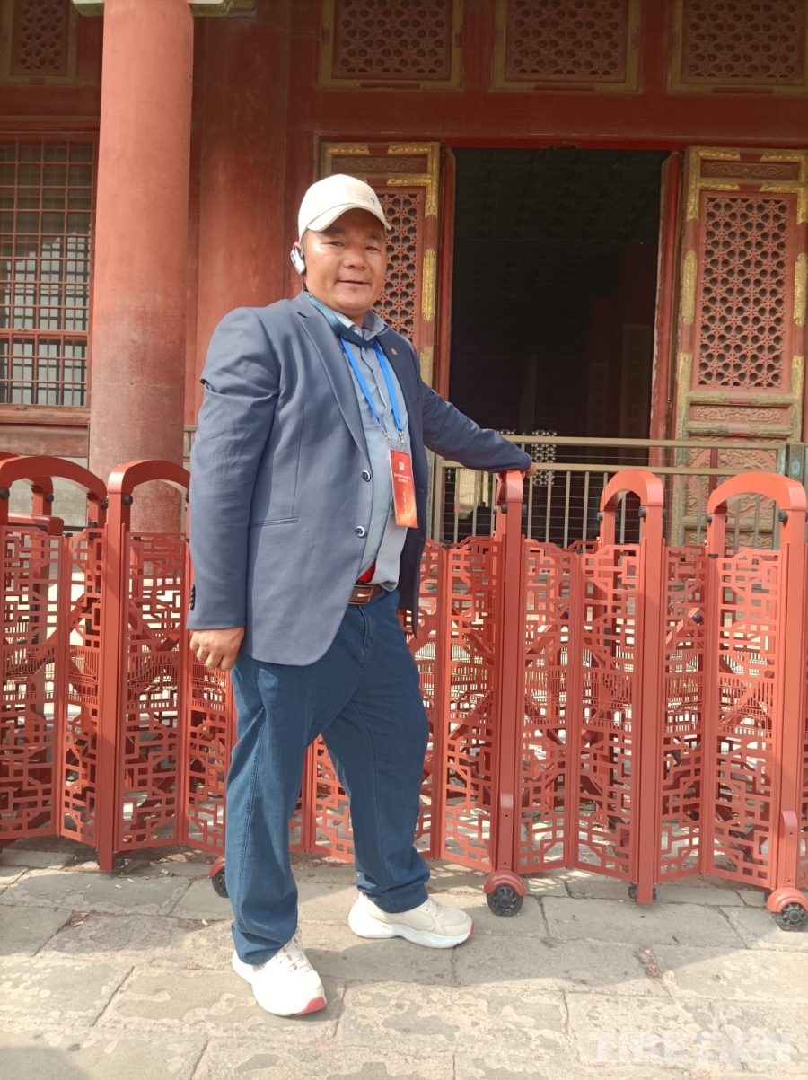 圖為西藏自治區(qū)野生動物保護員進京考察學習團全體成員在故宮前合影 攝影:趙婧茹