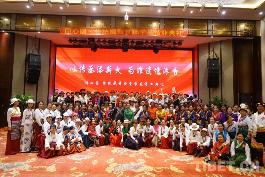 中國(guó)西藏網(wǎng)訊 5月9日,由同心圓傳統(tǒng)藏舞會(huì)堂舉辦的“為傳承添薪火 為非遺增濃香”傳統(tǒng)藏舞首批學(xué)員結(jié)業(yè)典禮在陜西西安舉行。22名學(xué)友經(jīng)過(guò)一年多的辛勤努力終于迎來(lái)了結(jié)業(yè)典禮,同時(shí)現(xiàn)場(chǎng)還為9名優(yōu)秀學(xué)員頒發(fā)推廣人證書。