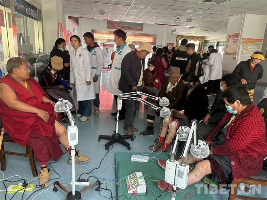 圖為洛隆縣藏醫(yī)院及人民醫(yī)院的醫(yī)療團(tuán)隊(duì)在現(xiàn)場(chǎng)開展平衡火罐、艾灸等中醫(yī)診療服務(wù) 供圖:洛隆縣藏醫(yī)院