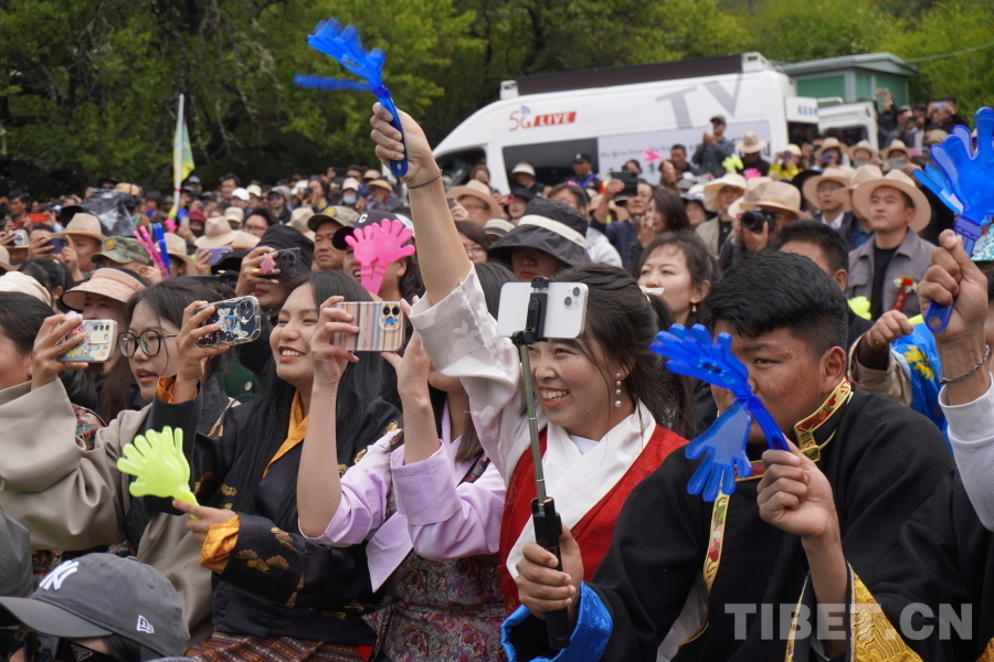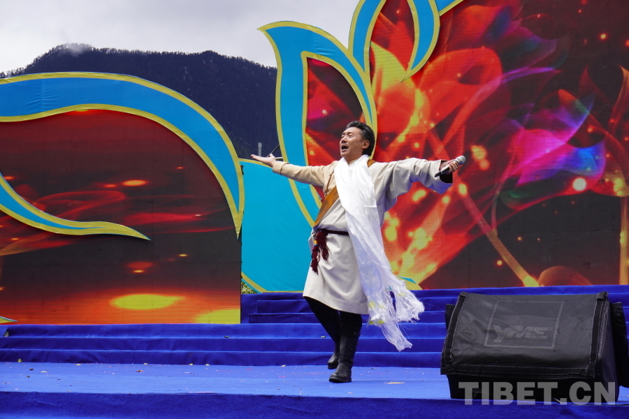 開幕式在群舞《丹旭承韻》中拉開序幕,《百鳥爭鳴》《圣潔米林·心之向往》《咱們西藏》《高原紅》《同心同行》等14個民俗特色歌舞依次上演,知名歌手容中爾甲、三農(nóng)主播阿佳旺姆等輪番上臺,為當?shù)厝罕姾陀慰蛶硪粓鼍实亩嗝褡逄厣栉枋⒀纭S茡P婉轉(zhuǎn)的民族歌曲、多姿多彩的非遺舞蹈、耳熟能詳?shù)某绷饕魳?,獲得現(xiàn)場掌聲、歡呼聲不斷。
