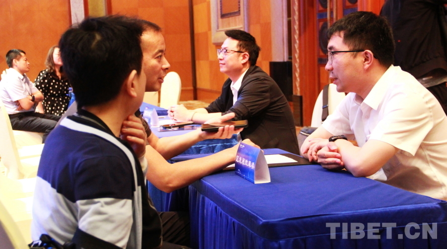 圖為西藏自治區(qū)通用航空產(chǎn)業(yè)招商引資推介會現(xiàn)場專門設(shè)置了洽談咨詢區(qū)域,西藏自治區(qū)有關(guān)單位與來自全國各地有合作與投資意向的公司進行面對面的交流 攝影:劉莉