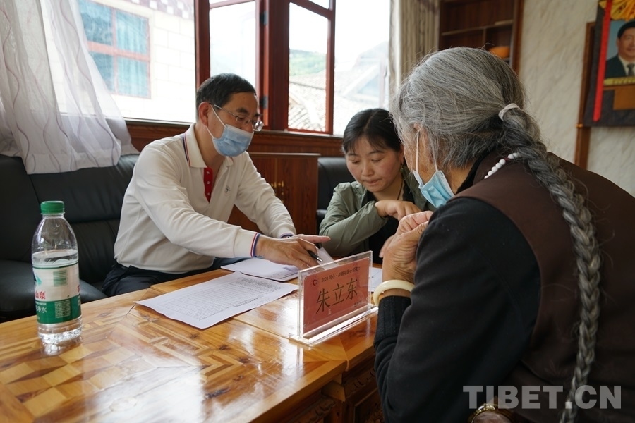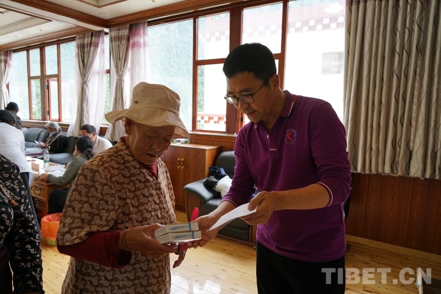 得知有來自北京的醫(yī)療專家為大家義診,家住白玉縣城的切呷一大早便帶著父母來到了義診現(xiàn)場。她的母親澤仁拉嘎今年75歲,自述下肢從腰間、腿部到腳尖都會(huì)發(fā)麻、有疼痛感,行走時(shí)腰部會(huì)很累,偶爾還會(huì)因?yàn)榭刂撇缓猛炔炕顒?dòng)而摔倒。北京水利醫(yī)院創(chuàng)傷骨科副主任醫(yī)師王耀輝在經(jīng)過詳細(xì)問診后,為拉嘎阿媽開具了營養(yǎng)神經(jīng)的藥品,并建議她進(jìn)一步做胸椎和腰椎方面的檢查。