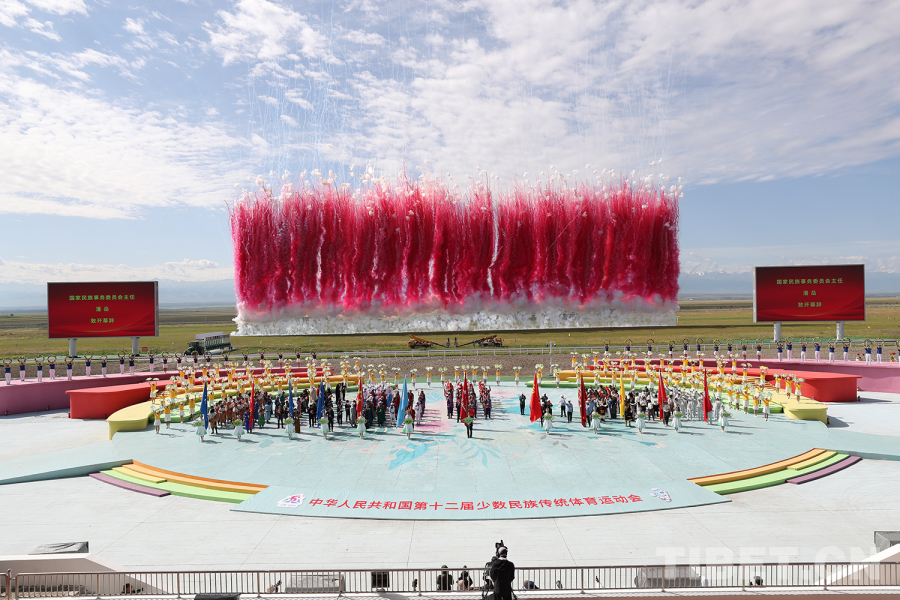 開賽儀式以“石榴花盛開 筑夢新時代”為主題進行文藝表演,“幸福歡歌”“絲路長歌”“追夢放歌”再現(xiàn)各民族交往交流交融的歷史畫卷,展示中華民族團結(jié)奮進、共建美好家園的時代風貌。萬馬奔騰的景象,歡快的歌舞,遼闊的草原,巍峨的天山,交匯成一幅壯麗美景。最后,全場起立高唱《歌唱祖國》,祝福偉大祖國繁榮昌盛、國泰民安。