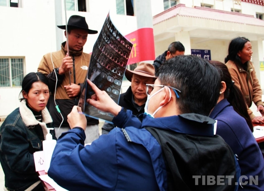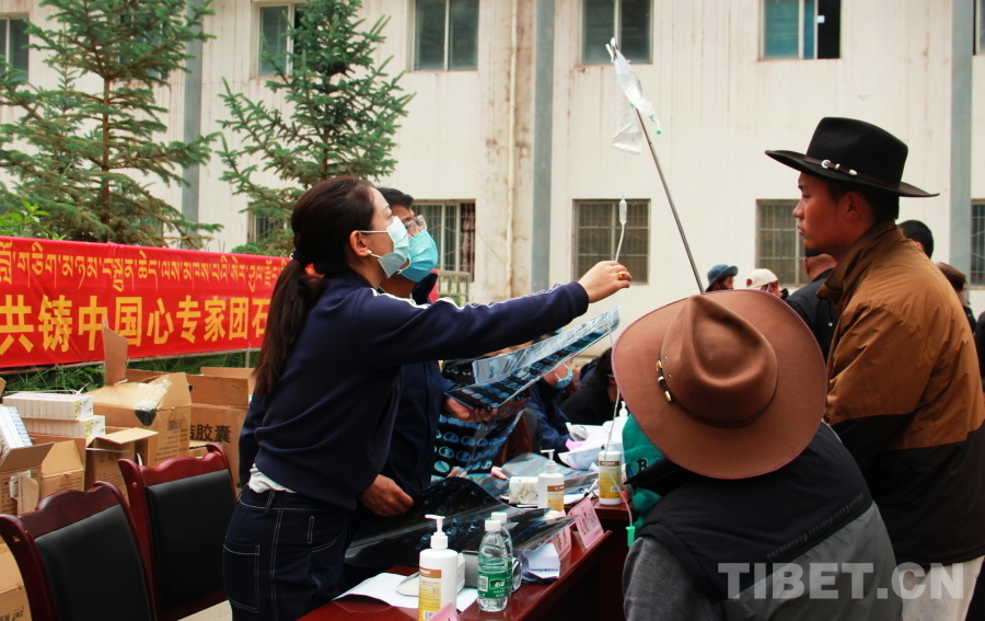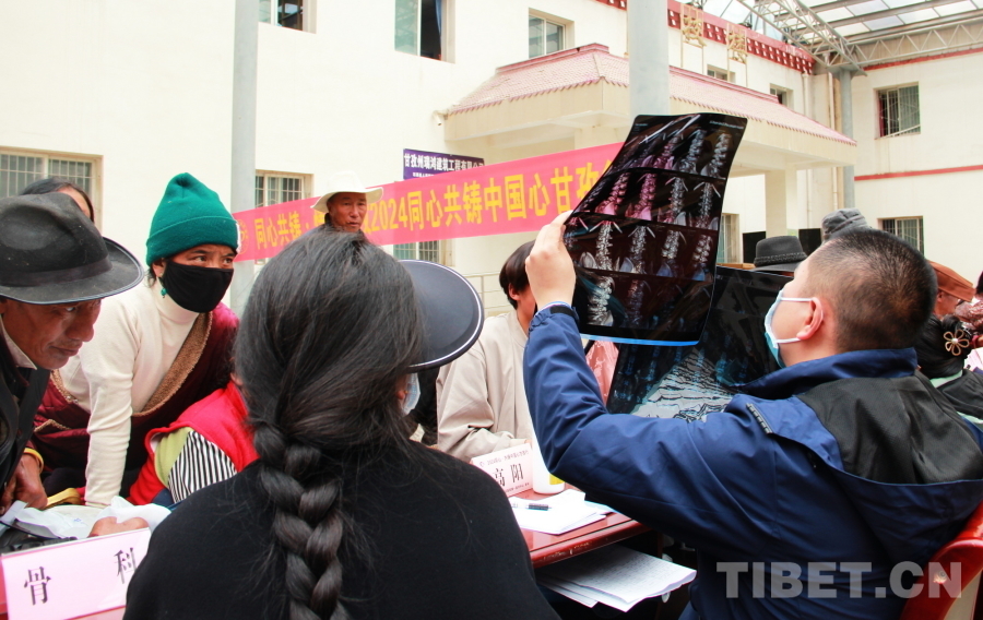 圖為2024“同心·共鑄中國(guó)心”甘孜行大型公益活動(dòng)石渠縣義診現(xiàn)場(chǎng),中國(guó)人民解放軍總醫(yī)院第一醫(yī)學(xué)中心骨科副主任醫(yī)師高陽(yáng)正在查看患者帶來(lái)的片子 攝影:劉莉