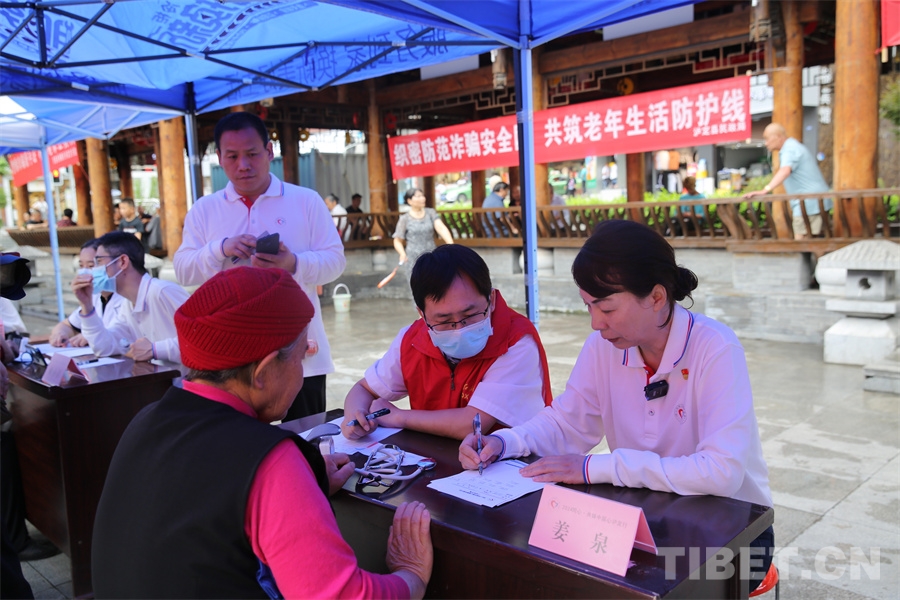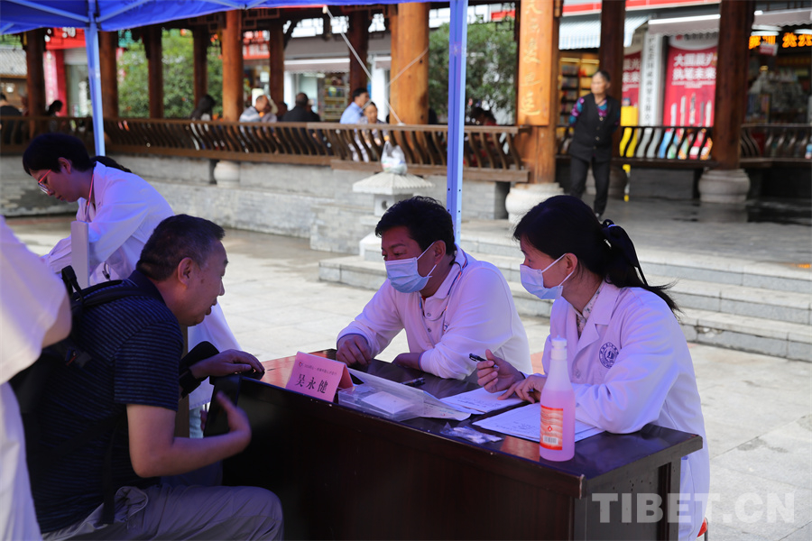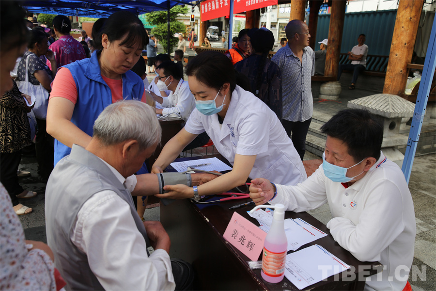 圖為瀘定橋廣場義診點,專家正在為患者量血壓 攝影:登真巴珍