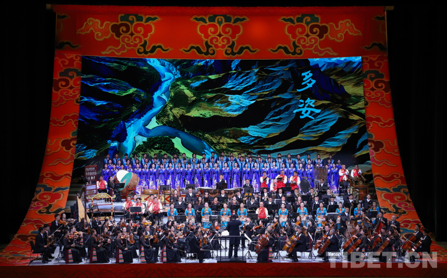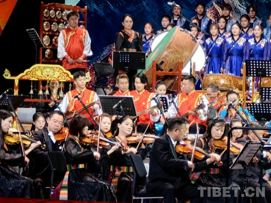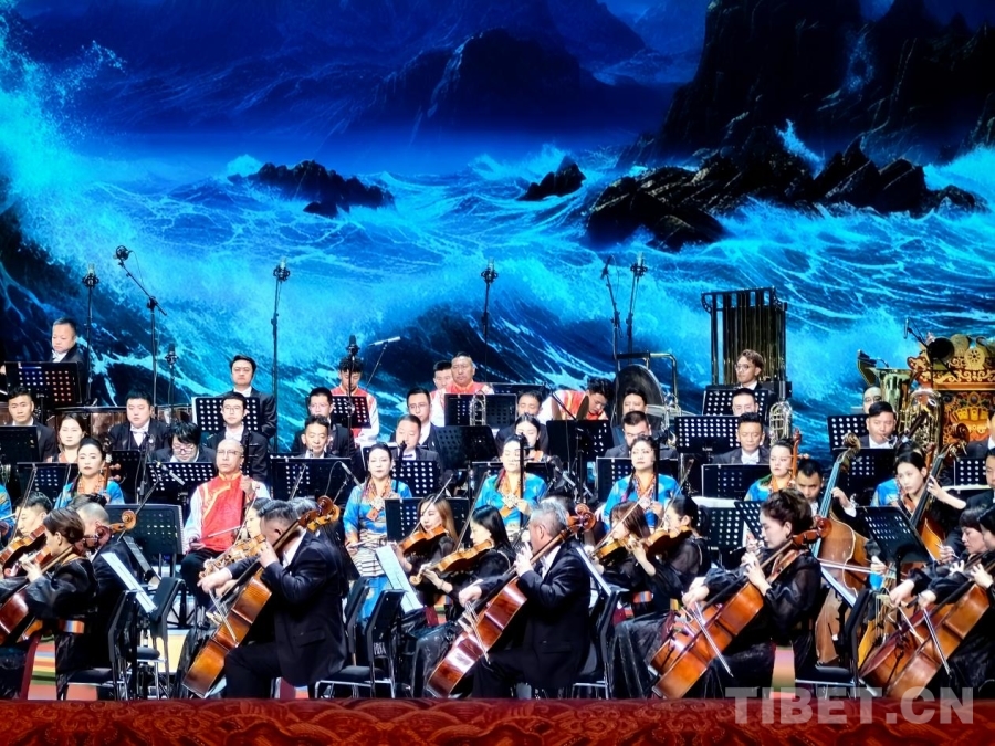 中國(guó)西藏網(wǎng)訊 7月12日晚,第二屆西藏文化藝術(shù)節(jié)在西藏大劇院開(kāi)幕。來(lái)自西藏自治區(qū)歌舞團(tuán)、甘肅省歌劇院、西藏自治區(qū)藏劇團(tuán)、西藏自治區(qū)話劇團(tuán)、西藏大學(xué)藝術(shù)學(xué)院、拉薩市歌舞團(tuán)(曲藝團(tuán))、阿里地區(qū)象雄藝術(shù)團(tuán)的藝術(shù)家,為嘉賓和觀眾奉上了一場(chǎng)精彩的民族管弦樂(lè)《喜瑪拉雅》。