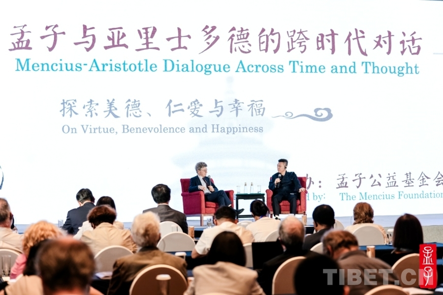 中國西藏網(wǎng)訊 7月12日晚,由孟子公益基金會主辦,《孟子與亞里士多德的跨時代對話——探索美德、仁愛與幸?!返娜⒂跋駜x式在北京香格里拉飯店舉行。