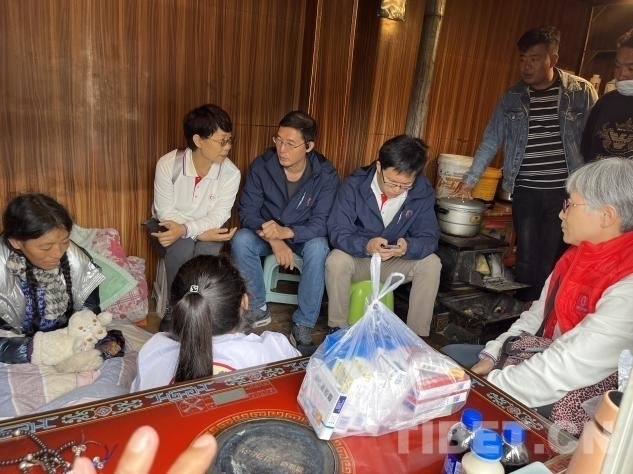在義診活動(dòng)進(jìn)行的同時(shí),幾位專(zhuān)家還分撥前往貧困家庭慰問(wèn)。其中,北京地壇醫(yī)院的中醫(yī)科副主任楊玉英,北京地壇醫(yī)院婦科副主任劉軍,北京老年醫(yī)院呼吸科副主任劉前桂,北京大學(xué)第一醫(yī)院骨科副主任徐貝宇一行來(lái)到了離措拉鎮(zhèn)不遠(yuǎn)的德西村山坡上,去阿珍家慰問(wèn)看診。據(jù)了解,阿珍的母親沖曲措于 2019 年進(jìn)行了胃癌手術(shù),術(shù)后做了五次化療,于 2020 年末完成化療。然而,2024 年 6 月份,沖曲措又被查出患有肺炎。由于吃不下飯,沖曲措體重嚴(yán)重下降,營(yíng)養(yǎng)嚴(yán)重不良。。