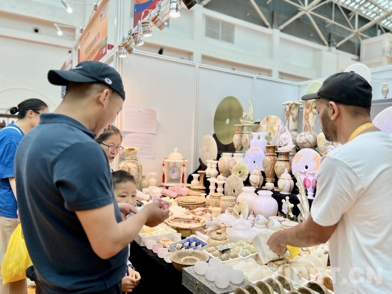 “你好,喜歡哪個給您介紹!”來自巴基斯坦的Sajid正和前來選購的客戶介紹巴基斯坦手工玉產(chǎn)品,展銷點(diǎn)有各式各樣的擺件、茶具、鐘表等,種類繁多,十分精美。他說:“我來拉薩已經(jīng)有三天了,這里氣候舒服,環(huán)境優(yōu)美,我還去過西藏的日喀則,那是個好地方。聽說雪頓節(jié)是西藏非常盛大的傳統(tǒng)節(jié)日,我很高興借此機(jī)會帶著巴基斯坦的工藝品來到拉薩,希望拉薩的朋友們喜歡。”