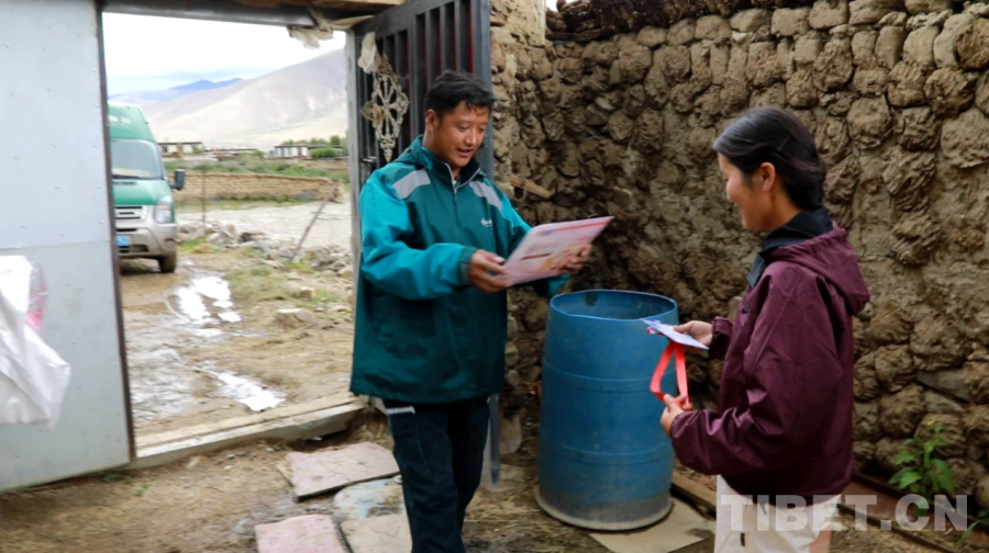 圖為郵政工作人員為次仁拉姆送來錄取通知書。