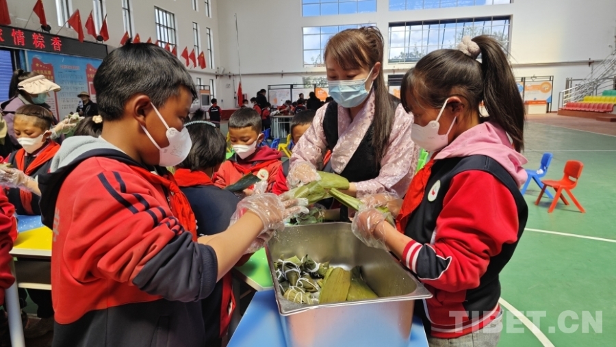 圖為高寧寧與學(xué)生們包粽子