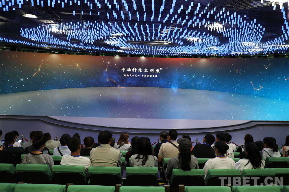 圖為西藏自治區(qū)科技專干進(jìn)京考察學(xué)習(xí)團(tuán)參觀中國科學(xué)家博物館,觀看中華科技文明展短片 攝影:王茜