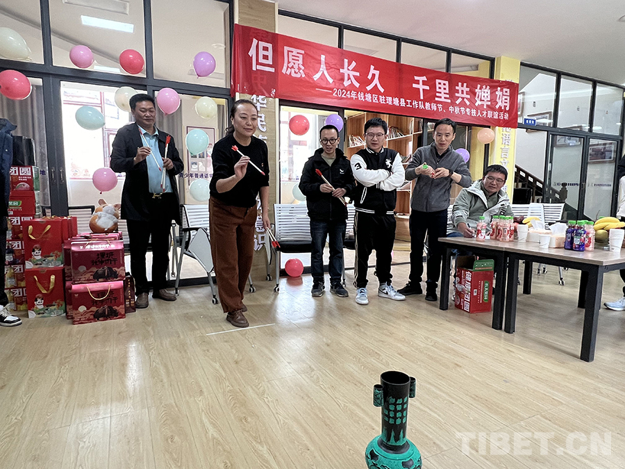 中國西藏網(wǎng)訊 9月13日,為慶祝中秋佳節(jié)和第四十個教師節(jié),浙江省杭州市錢塘區(qū)駐四川省甘孜藏族自治州理塘縣工作隊全體專技人才在理塘縣青少年普通話實訓(xùn)基地歡聚一堂,共話團圓。