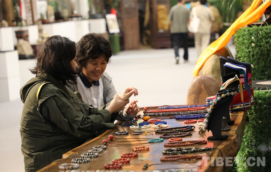 藏式古珠飾品,色彩濃郁、造型獨特,透著與眾不同的區(qū)域文化風格和時代美,吸引很多游客駐足觀賞和驚嘆。