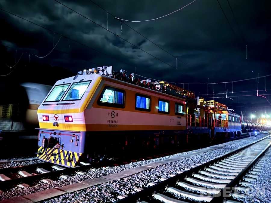 中國(guó)西藏網(wǎng)訊 9月17日22時(shí)40分,隨著夜幕降臨,一輪皎潔的中秋明月悄然升起,撒下銀輝覆蓋了廣袤的青藏高原。在青藏鐵路堆龍曲大橋上,一組黃色接觸網(wǎng)作業(yè)車緩緩移動(dòng),明亮的車燈刺破黑夜。車內(nèi)13名觸網(wǎng)工正在互相系綁安全帶,為即將開始的接觸網(wǎng)秋檢作業(yè)忙碌著。