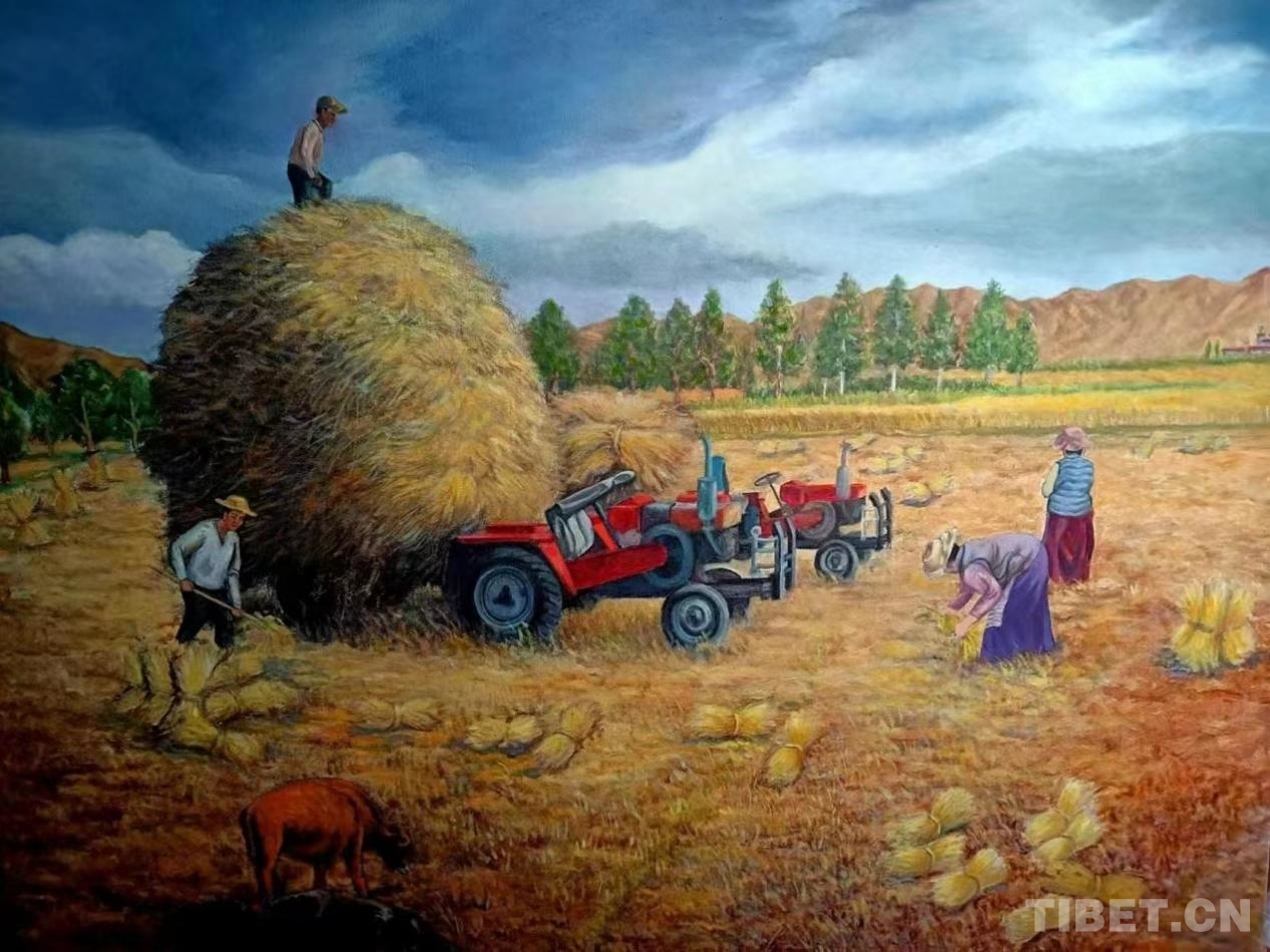 本次展覽收選西藏油畫學(xué)會58名老中青油畫家的80余幅優(yōu)秀作品,這些作品內(nèi)容豐富、主題鮮明、內(nèi)涵深邃,以西藏的自然風(fēng)光、人文景觀、生態(tài)環(huán)境等為題材,通過不同的視角和繪畫藝術(shù)表現(xiàn)手法把色彩斑斕、幸福祥和、生態(tài)良好的大美西藏呈獻給觀眾,凝結(jié)著高原各族油畫家生活在這片熱土的眷戀和深情。油畫家們以各自不同的視角和藝術(shù)語言展現(xiàn)對于雪域高原人、高原景色、 高原文化的理解和感悟,特別是對于高原新時代發(fā)展變化的贊美與憧憬,彰顯了社會主義新西藏的新發(fā)展、新變化、新生活、新面貌,再現(xiàn)了和平解放七十多年來的西藏的巨大變化和發(fā)展歷史,體現(xiàn)了西藏綠水青山的自然偉觀和多姿多彩的民族風(fēng)情,映照著西藏人民的幸福生活和璀燦的人文光華!