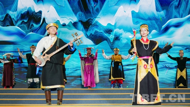 以“妙音入夢(mèng)”為序,遠(yuǎn)古神話為引,演出在央吉瑪?shù)挠茡P(yáng)歌聲中拉開(kāi)序幕。隨后,“藝承千年”篇章集中展示了國(guó)家級(jí)非物質(zhì)文化遺產(chǎn)、西藏的代表性傳統(tǒng)樂(lè)器扎念的發(fā)展與傳播脈絡(luò),阿里、日喀則、拉薩、林芝等地的扎念彈唱藝術(shù)一一登上舞臺(tái)。