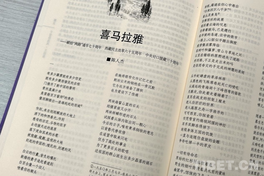 從地理喜馬拉雅到“千行詩(shī)”《喜馬拉雅》,第八屆魯迅文學(xué)獎(jiǎng)獲得者、西藏自治區(qū)文聯(lián)副主席,同時(shí)也是本詩(shī)創(chuàng)作者陳人杰感慨萬千。創(chuàng)作這首凝練了“兩路”通車70周年、西藏民主改革65周年、中央對(duì)口援藏30周年歷史性事件,涵蓋了西藏前世今生到新時(shí)代西藏變化的長(zhǎng)詩(shī),并非易事。歷經(jīng)文思淤堵、無從下筆,到靈光乍現(xiàn)、一氣呵成,陳人杰表示:“《喜馬拉雅》的出爐,是天時(shí)地利人和,是新時(shí)代新征程的使然,是西藏的饋贈(zèng),是眾水般心靈澄澈的力量匯聚起的浩蕩的贊歌?!?/p>