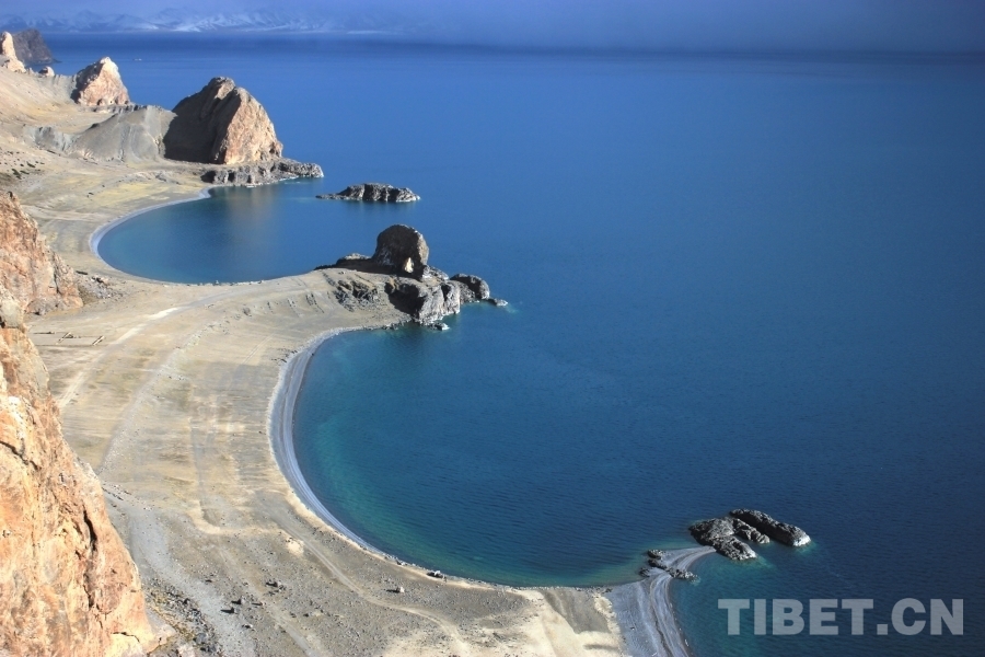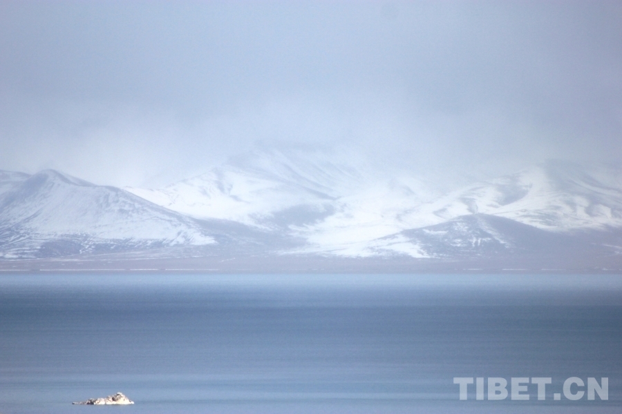 中國西藏網(wǎng)訊 納木錯(cuò)湖水湛藍(lán),湖面波光粼粼,圣象天門矗立在納木錯(cuò)北岸,遠(yuǎn)處的雪山綿延,靜謐,祥和。