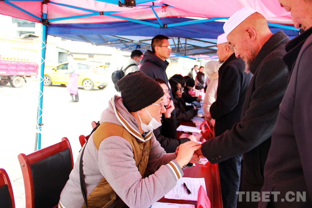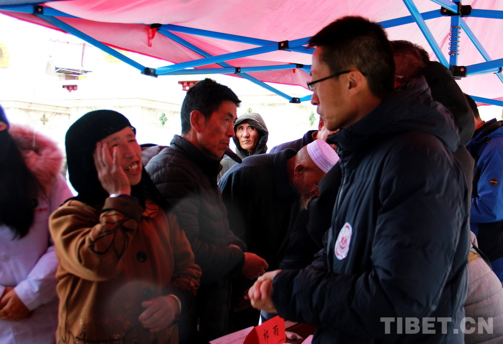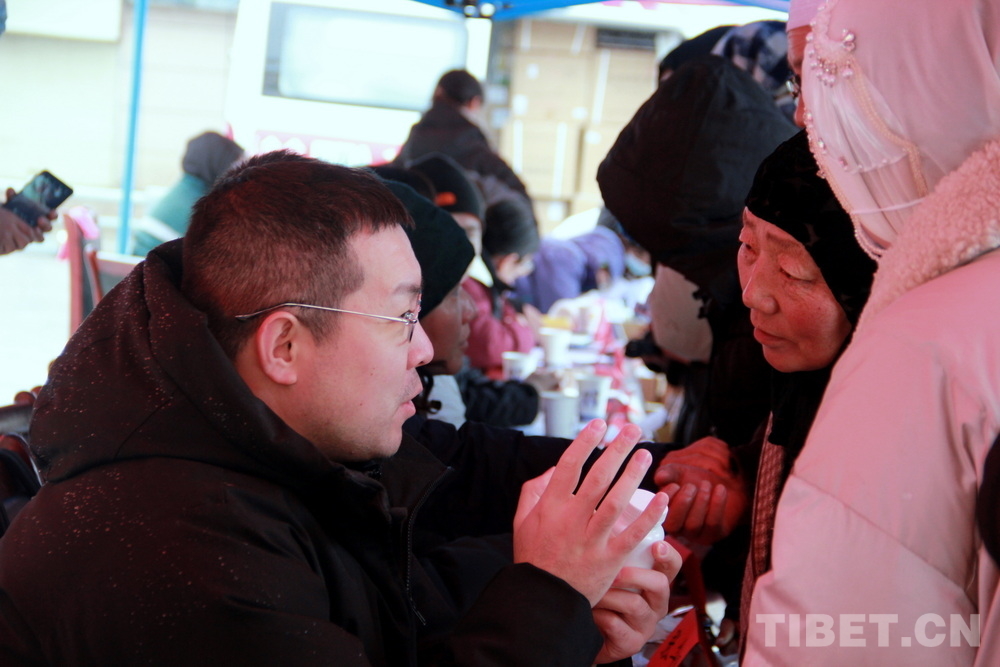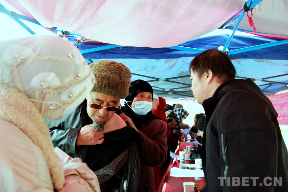 在郎木寺義診點,此前為了容納更多群眾就診,因此將義診點設(shè)在了寺院門外的小廣場。盡管大雪紛飛,但提前得知義診消息的群眾已經(jīng)陸續(xù)趕來,擔(dān)心臨時更換義診場所影響后續(xù)前來的群眾就診,醫(yī)務(wù)志愿者們毫無怨言地在臨時搭起的防雨棚下按時開始了義診。