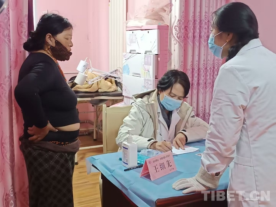 圖為航天總醫(yī)院婦產(chǎn)科專家王細先為當(dāng)?shù)厝罕娍丛\ 攝影:賈春玲