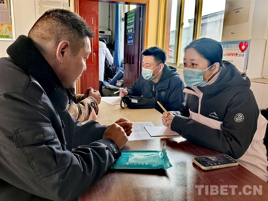 圖為當(dāng)?shù)蒯t(yī)護人員為群眾現(xiàn)場翻譯 攝影:賈春玲
