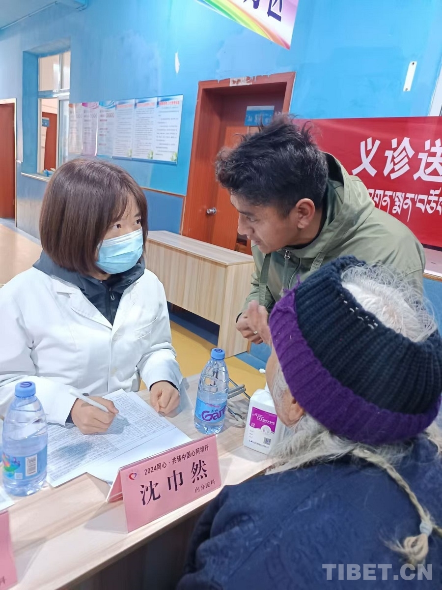 圖為中國康復(fù)研究中心普外科專家范榮福為當(dāng)?shù)厝罕娍丛\ 攝影:賈春玲