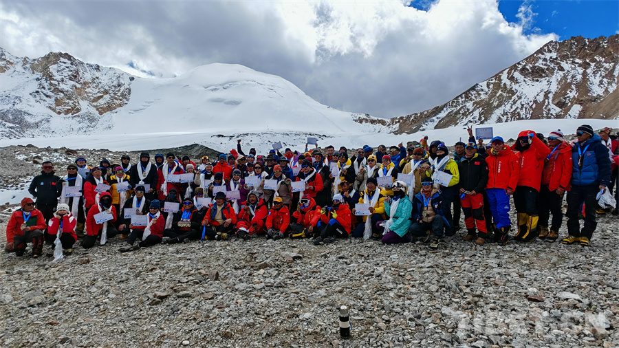 圖為2024第二十一屆中國西藏登山大會西藏民族大學部分師生登頂洛堆峰后合影留念,左四為楊建軍教授 攝影:馮重霖