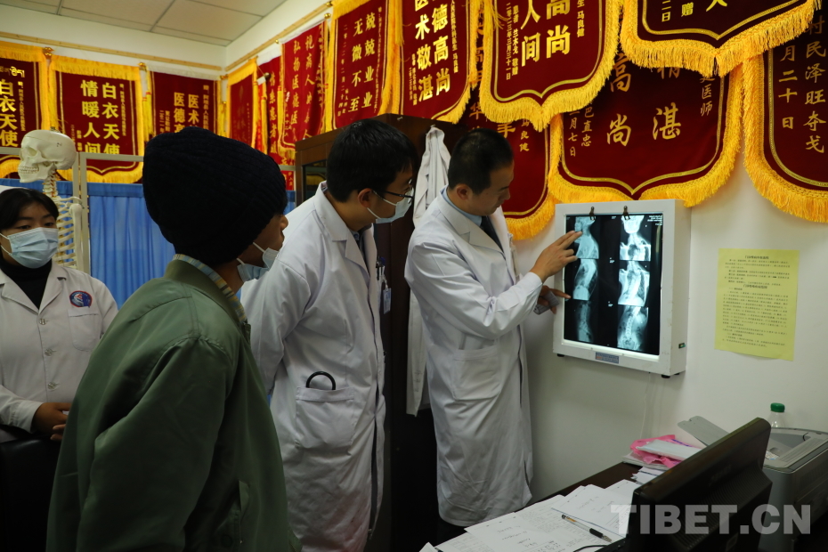 在骨科科室,同樣人潮涌動(dòng)。骨科疾病是當(dāng)?shù)匕傩盏囊淮罄_??剖覂?nèi)很多人圍著一位患者,他叫扎西能周,今年21歲,是阿壩職業(yè)學(xué)院的學(xué)生。醫(yī)生告訴他脊柱側(cè)彎已達(dá)60度,如果做手術(shù),將得到基金會(huì)的全力支持。扎西能周表示,這對(duì)他來(lái)說(shuō)是一個(gè)福音,他可以重新開(kāi)始新的生活。這一切都是為了阿壩人民的健康,在這里得到了完美的詮釋。