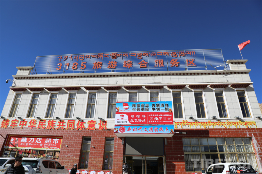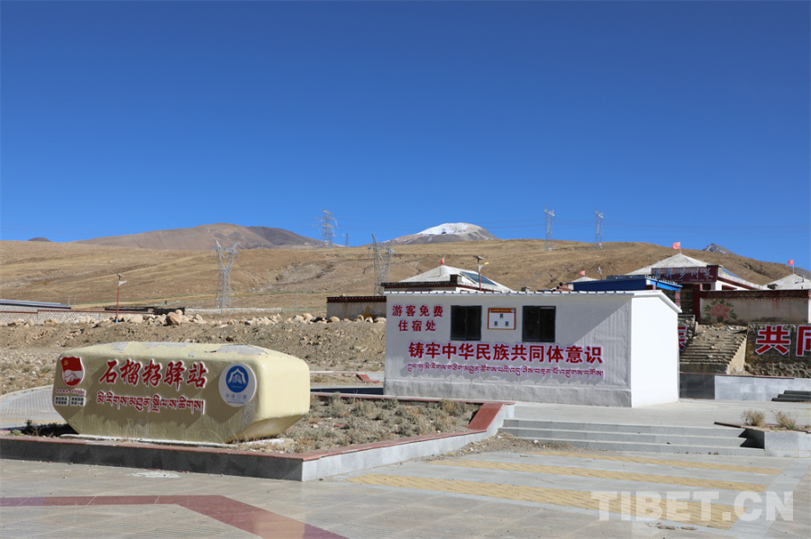 在西藏日喀則市拉孜縣熱薩鄉(xiāng)強(qiáng)公村,318國(guó)道5000公里紀(jì)念碑廣場(chǎng)上很多游客在三五成群拍照留念,廣場(chǎng)旁邊的樓房里也熱鬧非凡。樓里的石榴籽紅色驛站里,休息、喝水、充電等服務(wù)一應(yīng)俱全,還有當(dāng)?shù)鼐用裨诖虽N售手工藝品、食品、特產(chǎn)等?!袄淇扇∨峥杉{涼、渴可喝水、急可如廁、累可歇腳、傷可用藥”的“紅色驛站”也吸引更多游客在此駐足。