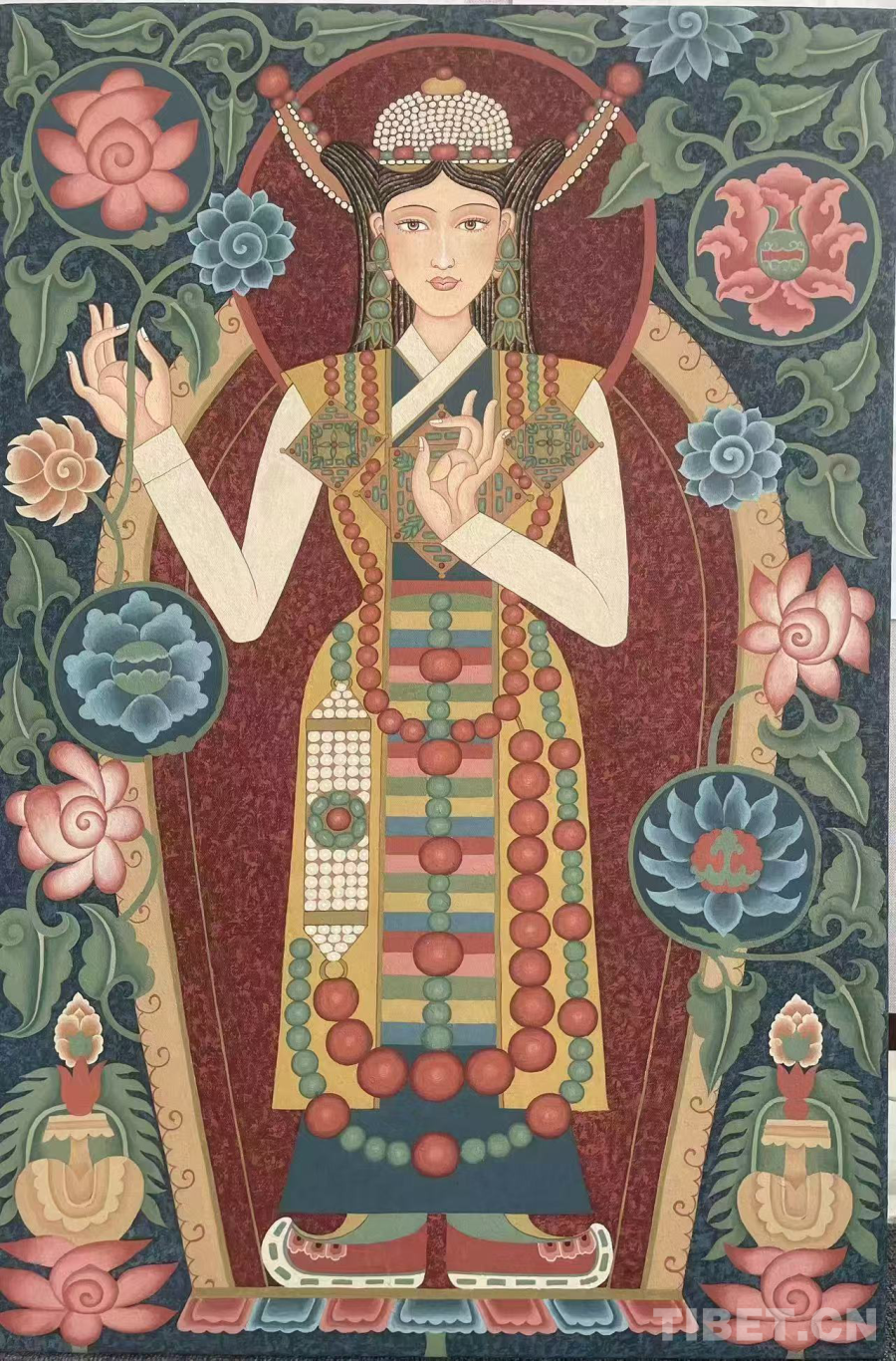 本屆西藏精品唐卡展以“傳承·創(chuàng)新·和諧”為主題,共展出60幅唐卡作品和20幅當(dāng)代布面重彩作品,作品創(chuàng)作題材廣泛、風(fēng)格流派多樣,藝術(shù)樣式豐富,不僅展現(xiàn)了傳統(tǒng)唐卡的精湛技藝,也融入了現(xiàn)代元素,展現(xiàn)了藝術(shù)家們對(duì)傳統(tǒng)與現(xiàn)代的深刻理解和獨(dú)特見(jiàn)解。這種多樣化、多元化的藝術(shù)展示,不僅使作品具有了更為豐富的表現(xiàn)力和視覺(jué)沖擊力,同時(shí)也為西藏當(dāng)代唐卡藝術(shù)創(chuàng)作注入了新的活力,為西藏當(dāng)代唐卡藝術(shù)多元發(fā)展奠定了良好的基礎(chǔ)。