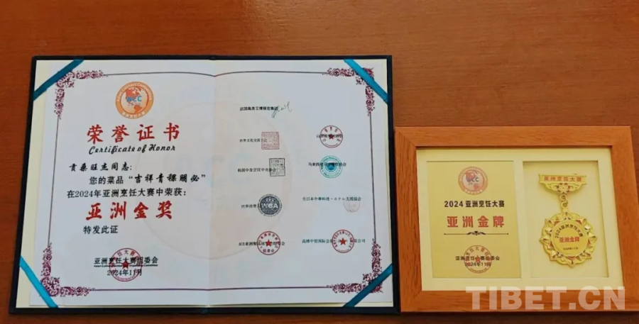 就是這樣一種美味而又小眾的小吃,卻在近日走出西藏,走到亞洲的視野。11月15日至17日,“2024ACE亞洲餐飲展覽會暨亞洲烹飪大賽”在山東濟南開幕,日喀則市技工學校教師貢桑旺杰憑借菜品《吉祥青稞朋必》摘得該大賽“亞洲金獎”。在大賽中,貢桑旺杰以傳統(tǒng)的“朋必”制作方法為基礎,創(chuàng)新融入了青稞食材,精心制作出極具日喀則本地風情的菜品——《吉祥青稞朋必》,獲得專家評委和參會同行的肯定。