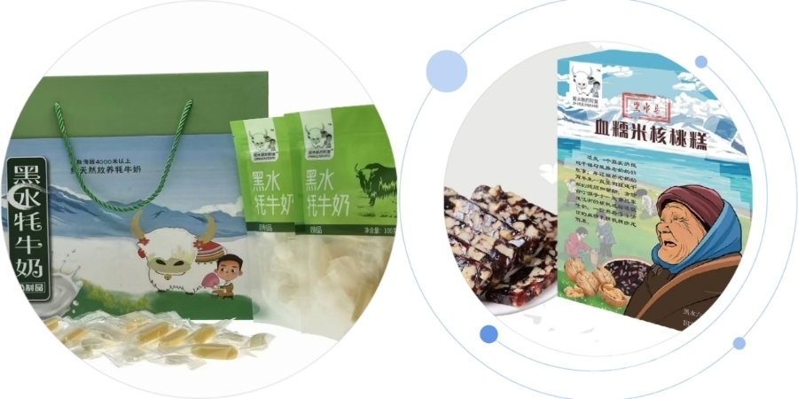 有了加工企業(yè)的支持,楊斐開始著手打造“阿斐牌”黑水牦牛奶條奶片和“阿斐牌”血糯米核桃糕。他發(fā)揮自己的設計專長,為這些產(chǎn)品打造了獨特的品牌形象。同時,他還聯(lián)系了東西部對口援建黑水的國企,爭取到了后續(xù)的產(chǎn)業(yè)投入。