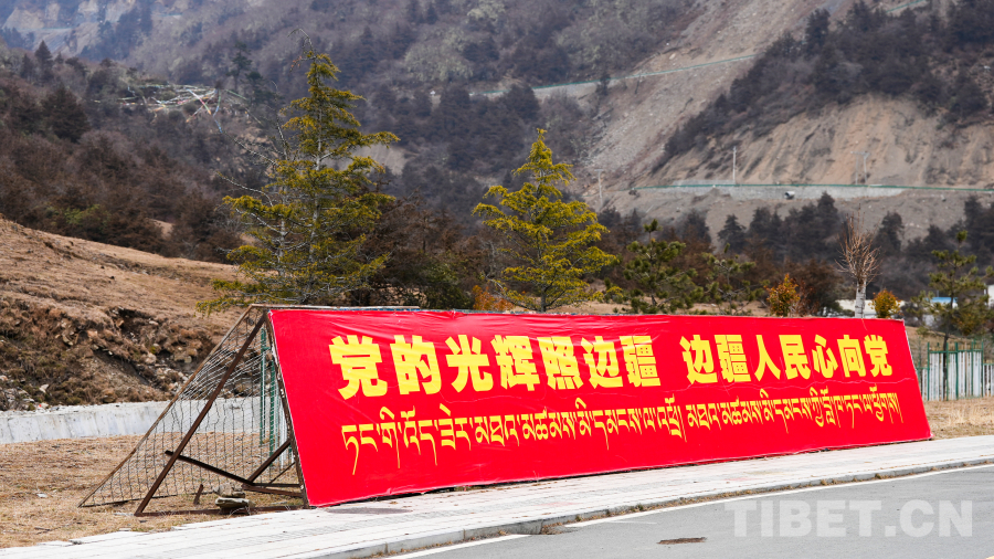 資料圖:山南市隆子縣玉麥鄉(xiāng)“黨的光輝照邊疆 邊疆人民心向黨”標語 攝影:趙振宇