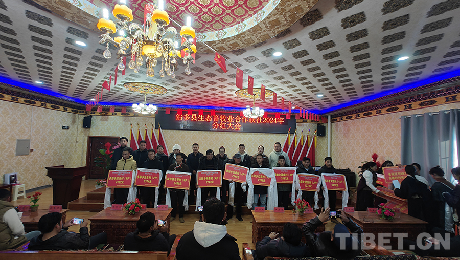 中國西藏網(wǎng)訊 12月26日,青海省玉樹藏族自治州治多縣生態(tài)畜牧業(yè)合作聯(lián)社(以下簡稱合作聯(lián)社)舉行了2024年分紅大會,為3401戶監(jiān)測戶分紅60.594萬元,治多縣農(nóng)牧和科技局、5鄉(xiāng)1鎮(zhèn)和20個行政村的負責人及入社股民代表參加。