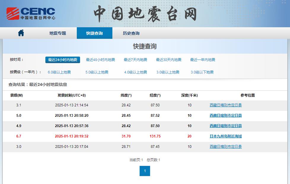 1月13日晚西藏定日1小時(shí)內(nèi)4次地震 最高震級(jí)5.0級(jí) 周邊震感明顯
