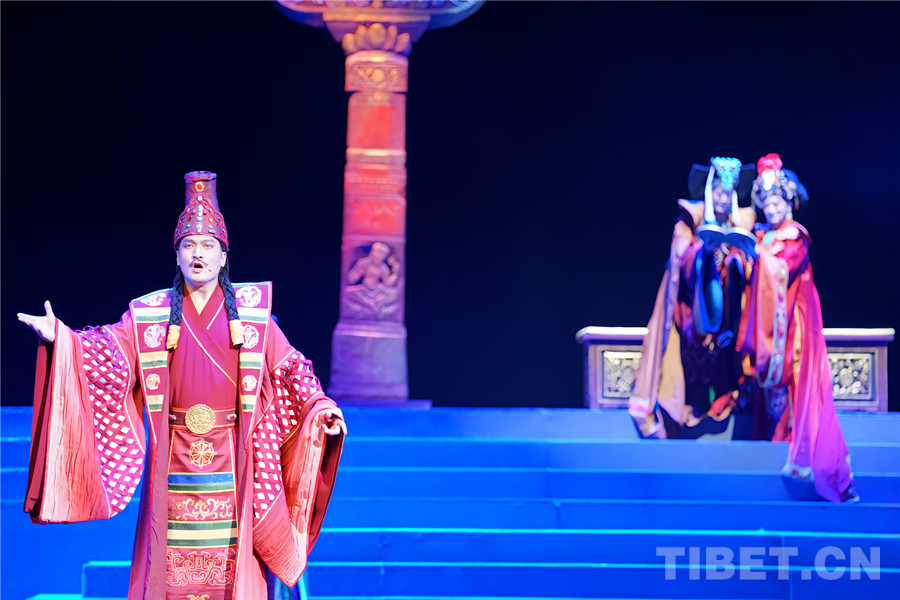 圖為《金城公主》演出現(xiàn)場(chǎng),吐蕃贊普赤德祖贊(左) 攝影:蔣馨悅
