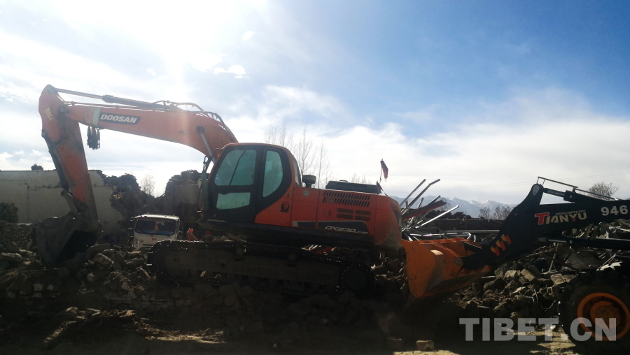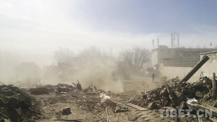 圖為地震重災區(qū)西藏自治區(qū)日喀則市定日縣長所鄉(xiāng)除險現(xiàn)場,畫面中右側(cè)的危房、建筑已完成除險 攝影:劉莉