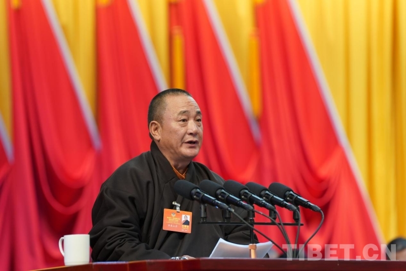 圖為西藏自治區(qū)政協(xié)委員洛桑山丹發(fā)言 攝影:王淑